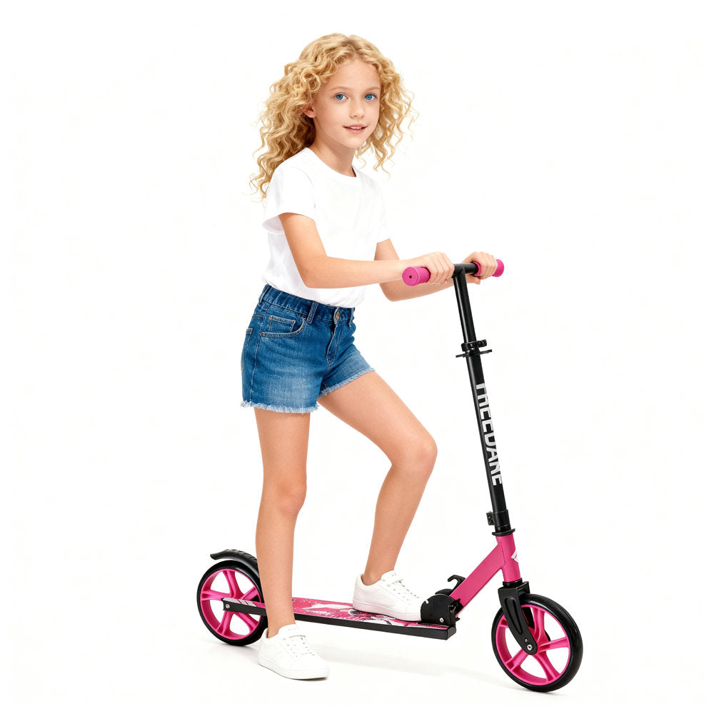 Experience smooth rides on any surface with our All-Terrain Kick Scooter for kids and teens. Equipped with 200mm high-rebound PU wheels, this scooter glides easily on lawn, asphalt, pebbles, and rubber tracks. The sturdy foot kickstand provides stability when parked, while the foldable and lightweight design makes it convenient to carry and store. With vibrant colors and durable construction, it’s perfect for outdoor fun, commuting, and active play.